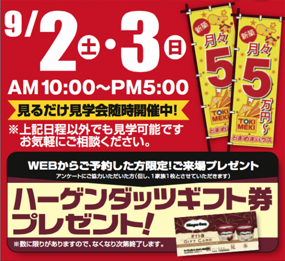 9月2日(土)3日(日)にモデルハウス見るだけ見学会を開催!