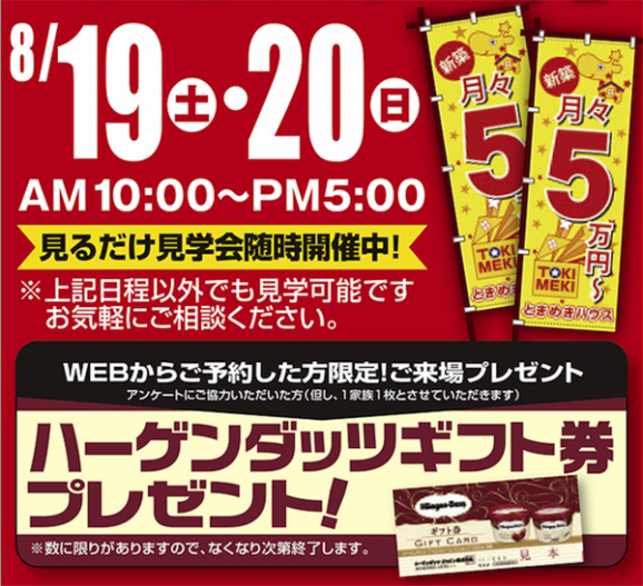 8月19日(土)20日(日)にモデルハウス見るだけ見学会を開催!