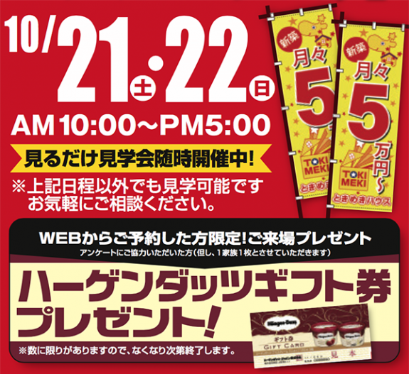 10月21日(土)22日(日)にモデルハウス見るだけ見学会を開催!