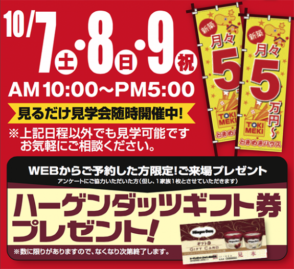 10月7日(土)〜9日(祝)にモデルハウス見るだけ見学会を開催!
