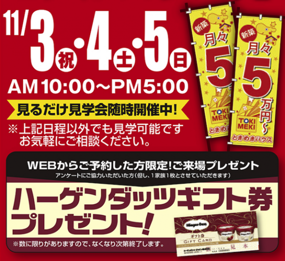11月3日(祝)〜5日(日)にモデルハウス見るだけ見学会を開催!