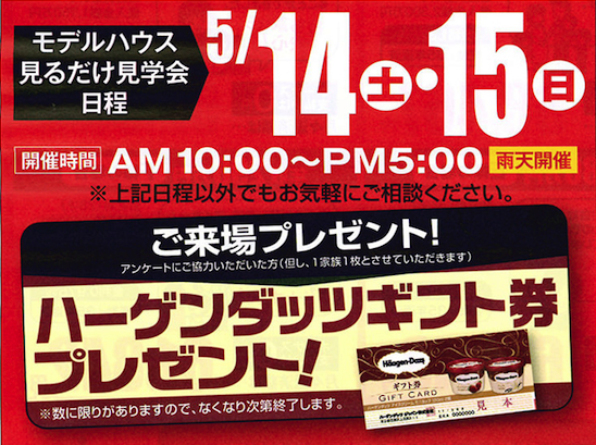 5月14日(土)15日(日)にモデルハウス見るだけ見学会を開催!
