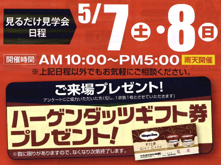 5月7日(土)8日(日)に新築住宅見るだけ見学会を開催!