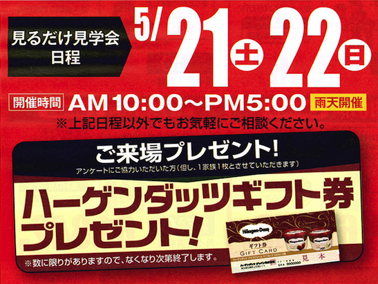5月21日(土)22日(日)に新築住宅見るだけ見学会を開催!