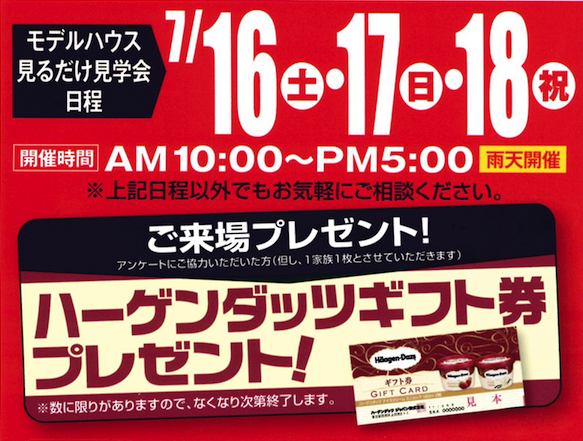 7月16日(土)〜18日(祝)にモデルハウス見るだけ見学会を開催!