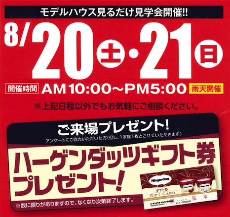 8月20日(土)21日(日)にモデルハウス見るだけ見学会を開催!