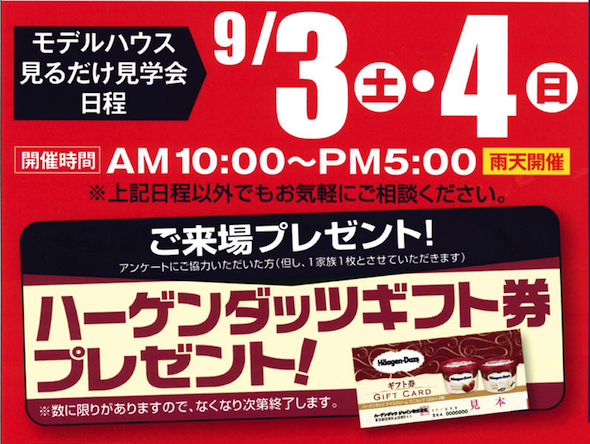 9月3日(土)4日(日)にモデルハウス見るだけ見学会を開催!