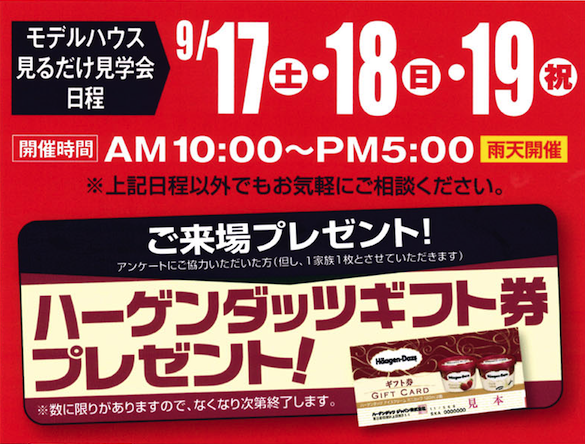 9月17日(土)〜19日(祝)にモデルハウス見るだけ見学会を開催!