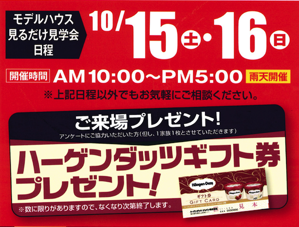 10月15日(土)16日(日)にモデルハウス見るだけ見学会を開催!