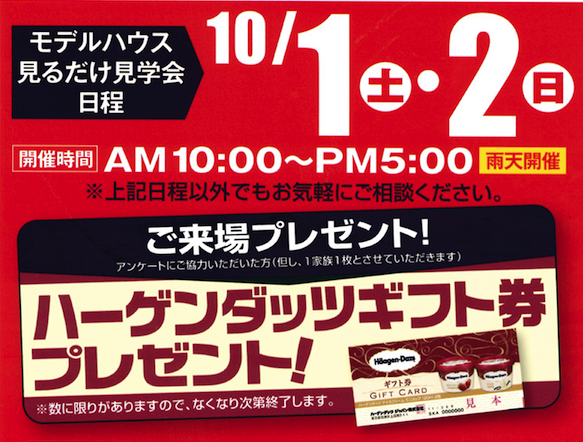 10月1日(土)2日(日)にモデルハウス見るだけ見学会を開催!