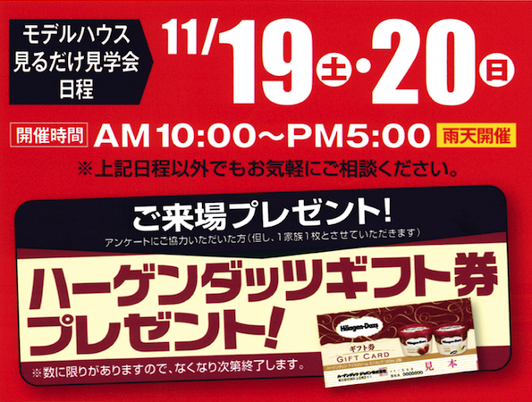 11月19日(土)20日(日)にモデルハウス見るだけ見学会を開催!