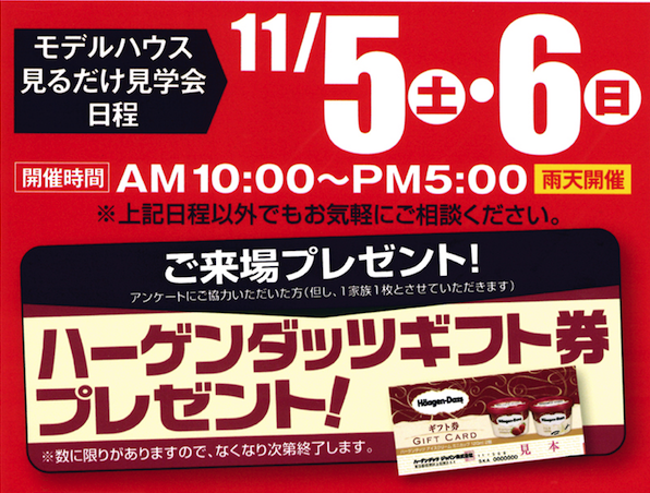 11月5日(土)6日(日)にモデルハウス見るだけ見学会を開催!