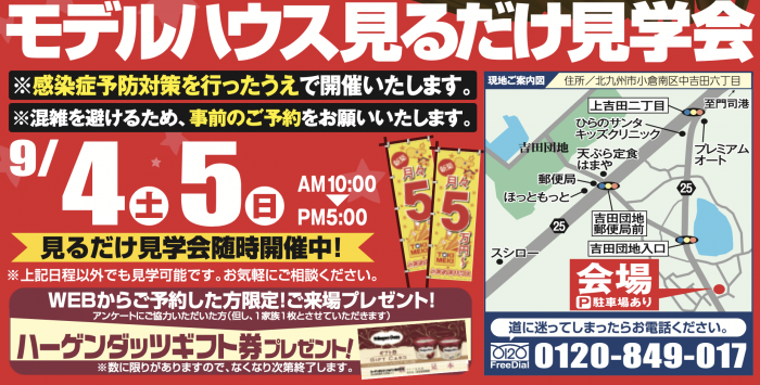 【完全予約制】7月13日(土)~14日(日)、27日(土)~28日(日)にモデルハウス見学会を開催!