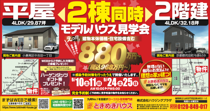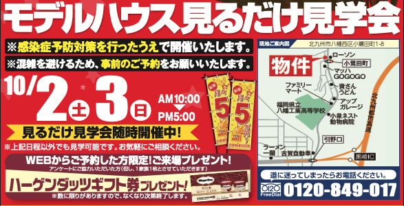 【完全予約制】10月14日(土)~15日(日)、28日(土)~29日(日)に2棟同時モデルハウス見学会を開催!