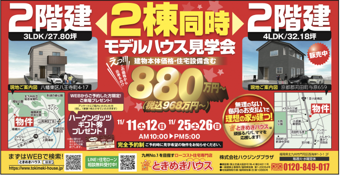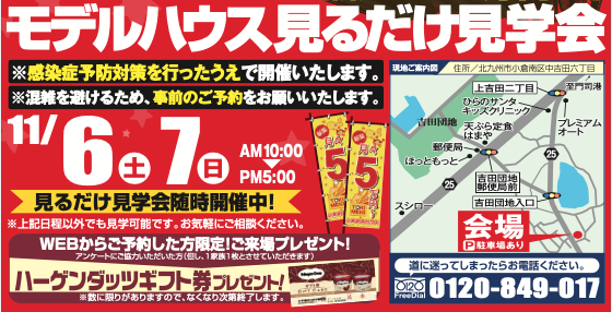【完全予約制】11月12日(土)~13日(日)、25日(土)~26日(日)に2棟同時モデルハウス見学会を開催!