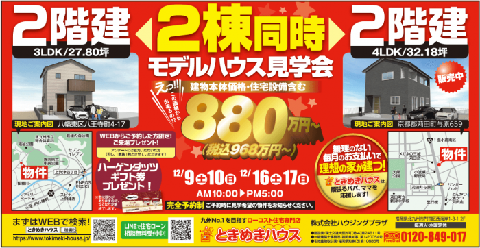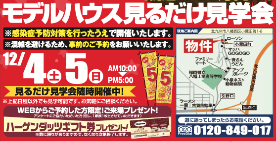 【完全予約制】12月9日(土)~10日(日)、16日(土)~17日(日)に2棟同時モデルハウス見学会を開催!