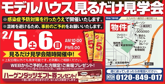 【完全予約制】2月10日(土)~11日(日)、24日(土)~25日(日)に2棟同時モデルハウス見学会を開催!