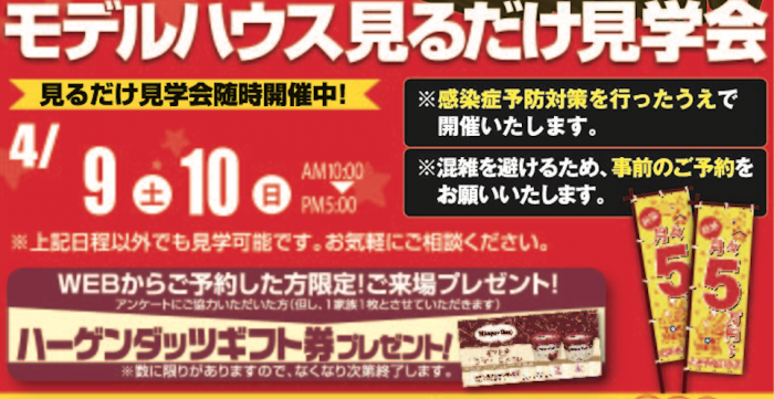 【完全予約制】4月13日(土)~14日(日)、27日(土)~28日(日)にモデルハウス見学会を開催!