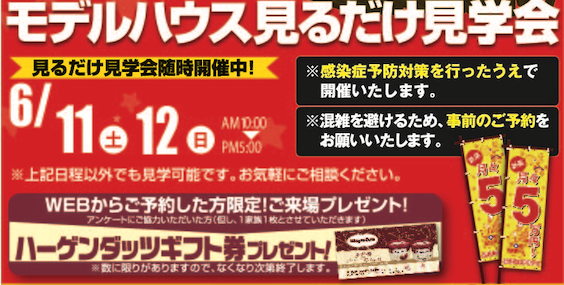 【完全予約制】6月8日(土)~9日(日)、22日(土)~23日(日)にモデルハウス見学会を開催!