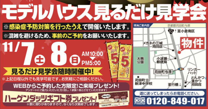 【完全予約制】11月07日(土)〜08日(日)にモデルハウス見るだけ見学会を開催!