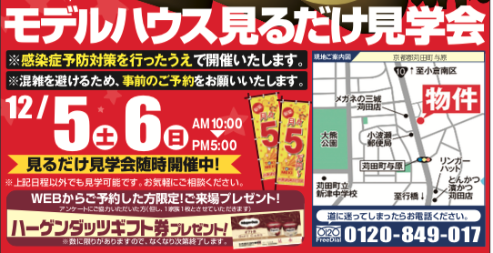 【完全予約制】12月05日(土)〜06日(日)にモデルハウス見るだけ見学会を開催!