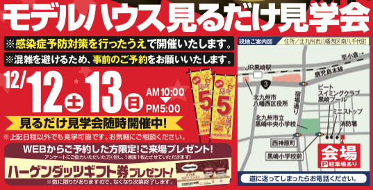 【完全予約制】12月12日(土)〜13日(日)にモデルハウス見るだけ見学会を開催!