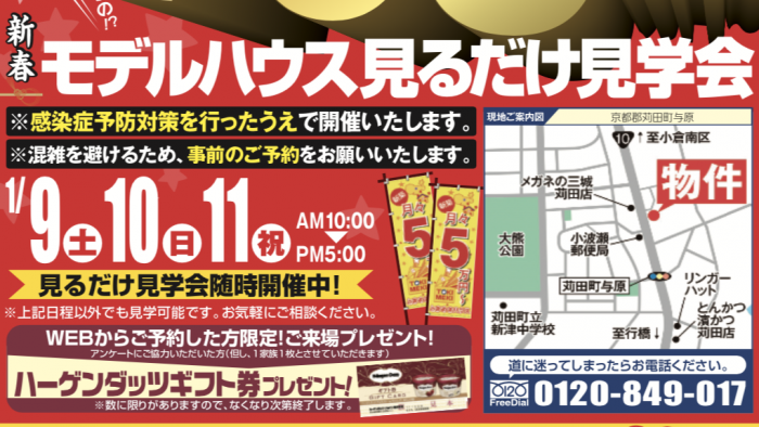 【完全予約制】1月09日(土)〜11日(祝)にモデルハウス見るだけ見学会を開催!