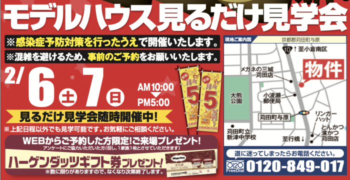 【完全予約制】2月06日(土)〜7日(日)にモデルハウス見るだけ見学会を開催!