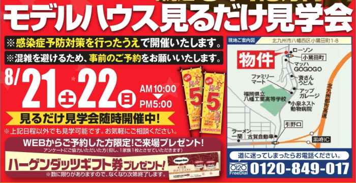 【完全予約制】8月21日(土)〜22日(日)にモデルハウス見るだけ見学会を開催!