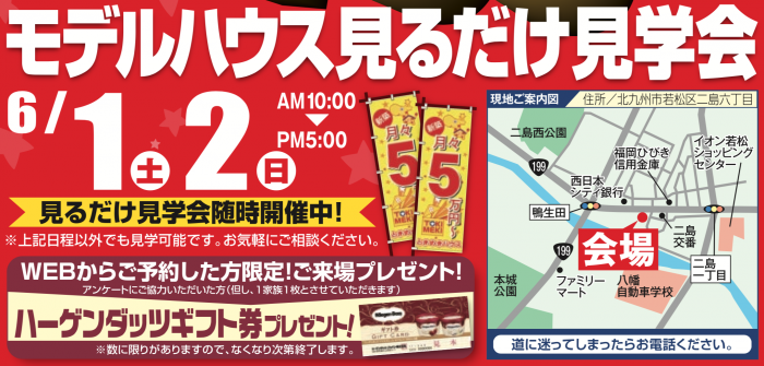 6月1日(土)2日(日)にモデルハウス見るだけ見学会を開催!