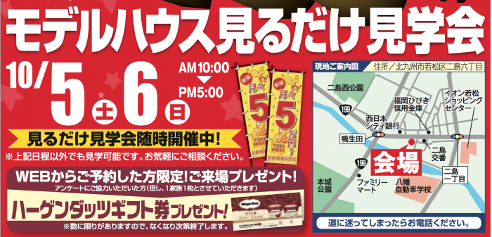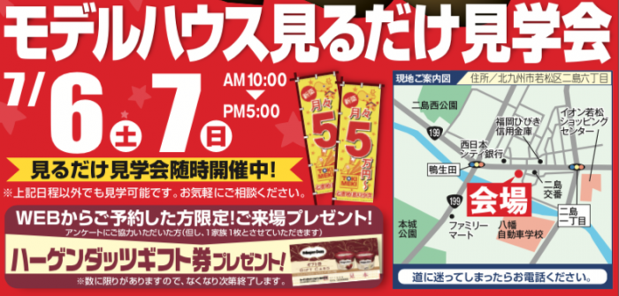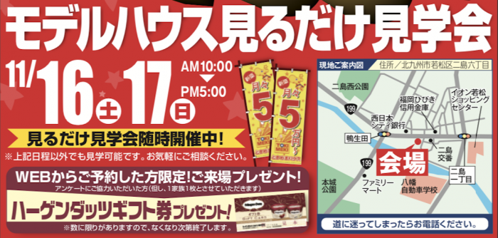 若松区二島に完成したローコスト住宅のモデルハウスの「見るだけ見学会」を開催。