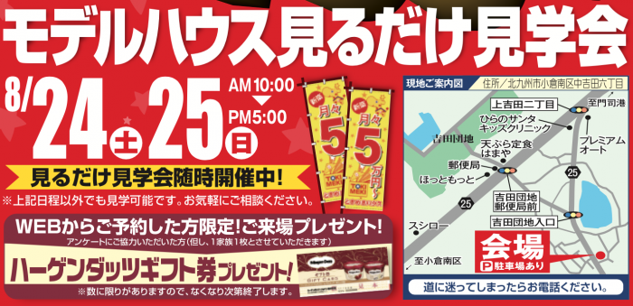 8月24日(土)25日(日)にモデルハウス見るだけ見学会を開催!