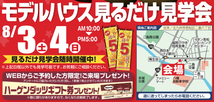 8月3日(土)4日(日)にモデルハウス見るだけ見学会を開催!