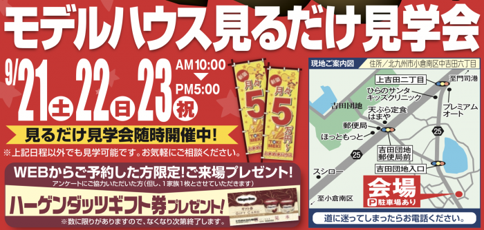 9月21日(土)〜23日(祝)にモデルハウス見るだけ見学会を開催!