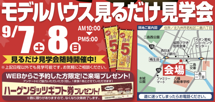 9月7日(土)8日(日)にモデルハウス見るだけ見学会を開催!