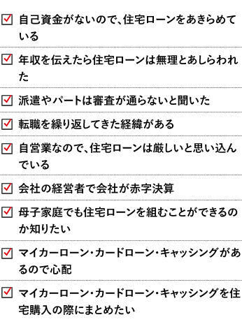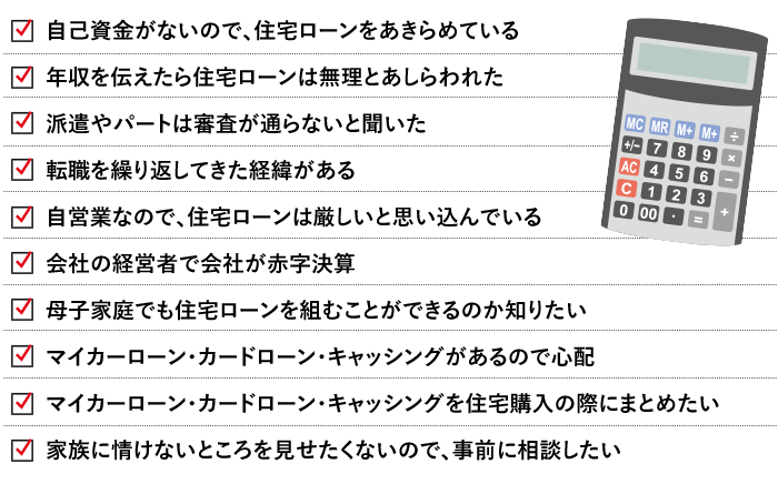 審査基準は正式には公表されていません。しかし、お客様のご事情をきちんと把握し、それぞれ得意な金融機関にその情報をきちんとお伝えすることで、金融機関にも味方になっていただきながら多くのお客様の住宅ローンの審査を通してきました。
